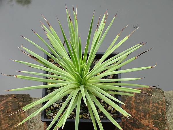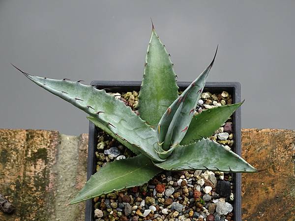 這株是實生的Ag. asperrima, 三年株,盆器是邊長12公分的膠盆;目前培植的經驗是它很強健,可以野放種植,稍微加一點肥料,會長得更好。
