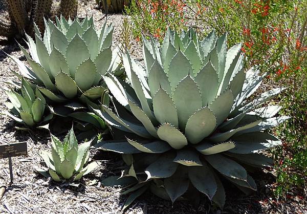 位於美國加州洛杉磯的漢庭頓植物公園Huntington Botanical Gardens包掛了十幾個公園,其中的沙漠公園包Desert Garden收集了5000多種(?)多肉植物,是多肉愛好者的大本營。在這個公園裡收集最多品種的包括蘆薈、龍舌蘭、仙人掌等等。上圖或高或低的植物,大部分是蘆薈,少部分是大戟科的植物,品種之多,簡直就是大開眼界,要認也認不完。